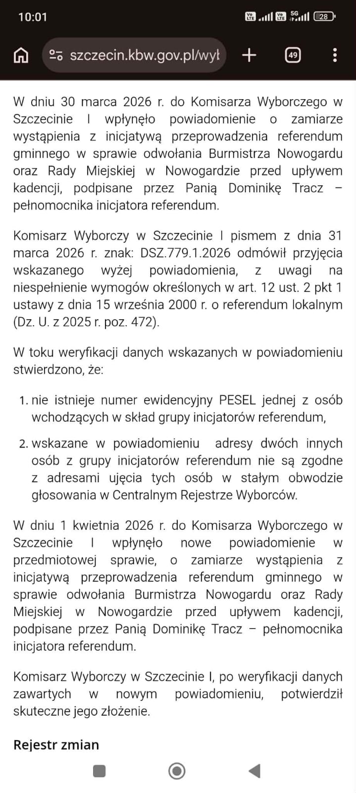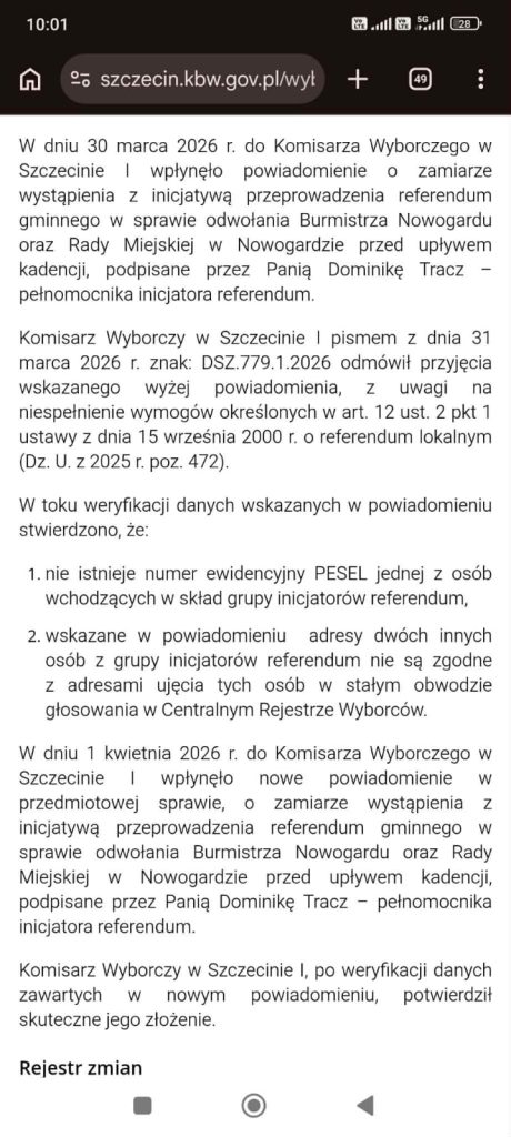 Gdy zwykły mieszkaniec chce skorzystać ze swoich konstytucyjnych praw i składa wniosek o referendum, machina urzędnicza Komisarza Wyborczego pracuje z bezwzględną precyzją. Jedna literówka, nieścisłość w adresie, pomimo, że ten wynikał z faktycznej zmiany miejsca zamieszkania, czy błędna jedna cyfra w numerze PESEL – i wniosek ląduje w koszu. Tu nie ma miejsca na „oczywistą omyłkę pisarską”. Tu jest twardy paragraf i zero litości.